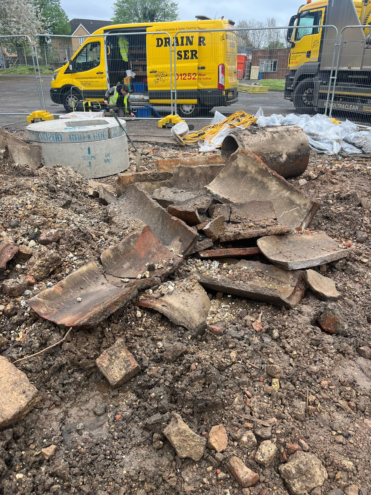 Not every contractor is fully aware of what’s going on underground when they come to do a job, but this sort of thing is our field of expertise. We were quickly on the scene to start work excavating and renewing the destroyed culvert, taking the opportunity to install two new access chambers to the system.